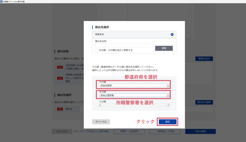 提出先欄には〇〇警察署長と”長”を入力することを忘れないように注意しましょう。