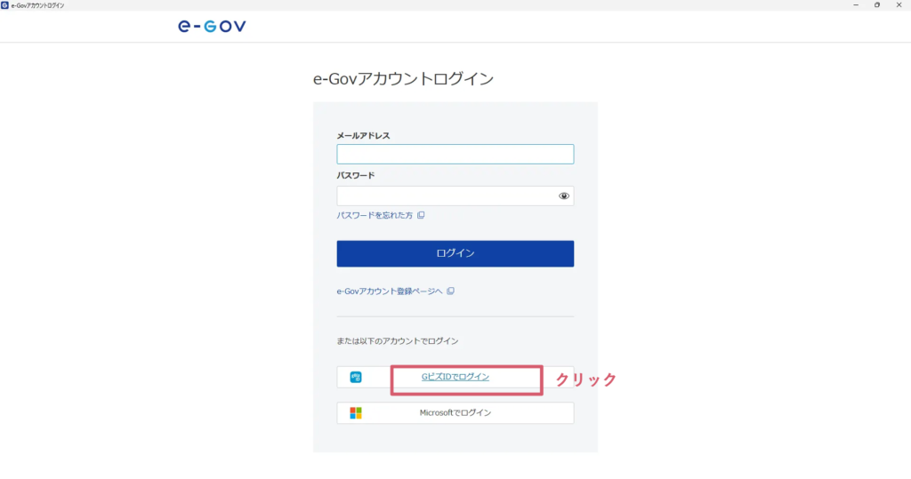 すでにGビズID(法人・個人事業主向けの行政手続き共通アカウント)をお持ちの場合、そのIDを使ってe-Govにログインできます。