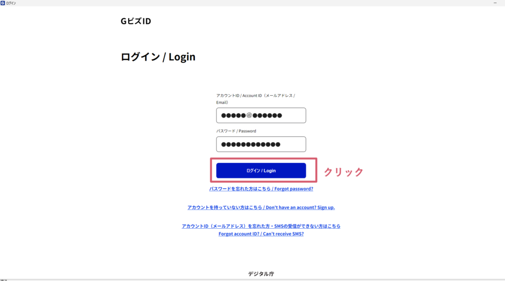 GビズIDの登録メールアドレスとパスワードを入力します。