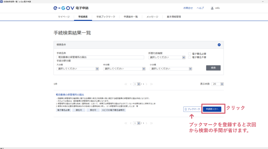 表示された手続はブックマークすると、次回から検索の手間がなくなります。