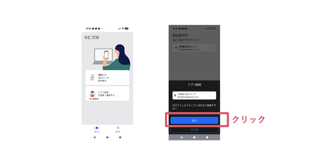 連携させたGビズIDやMicrosoftアカウントから電子申請用のアプリケーションにログインすることができます。