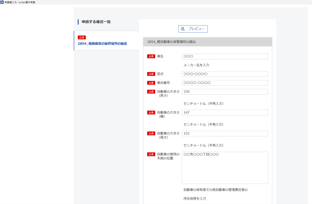 軽自動車の保管場所届出(e-Gov電子申請)について、
