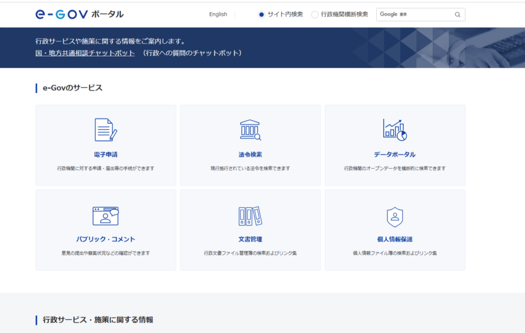 e-Govとは「オンライン上であらゆる行政に関するオープンデータや行政情報にアクセスでき、電子申請で申請手続きを行えること」をコンセプトとする、デジタル庁が運営する「電子政府の総合窓口」のことを言います。